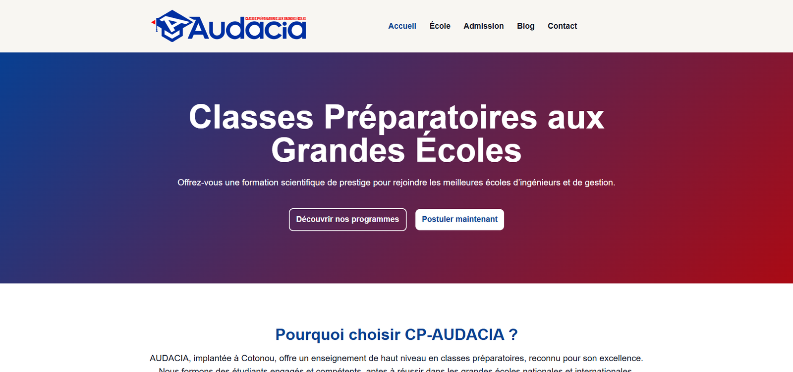 BlogSite vitrineSite d'un Cours PréparatoireCP AudaciaSite d'un consultantAM ConseilVotre centre des solutions numériquesMA-INFOBlog d'informationVent d’AfriquesCabinet d'expertise comptableIcs-expertsSite d'une universitéISAO-BéninCentre d'Arbitrage et de MédiationCentre EVAM